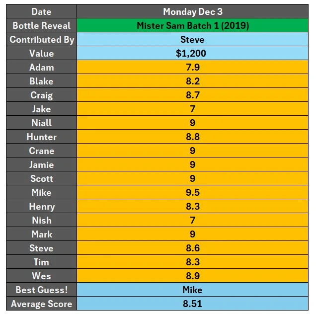 While an average score like 8.51 might seem like a low score for such an expensive bottle, I look at the bigger picture that 6 people scored this bottle a 9 or higher. For a group of guys who have tasted some of the most expensive bottles out there, getting a 9 from them is quite the feat.