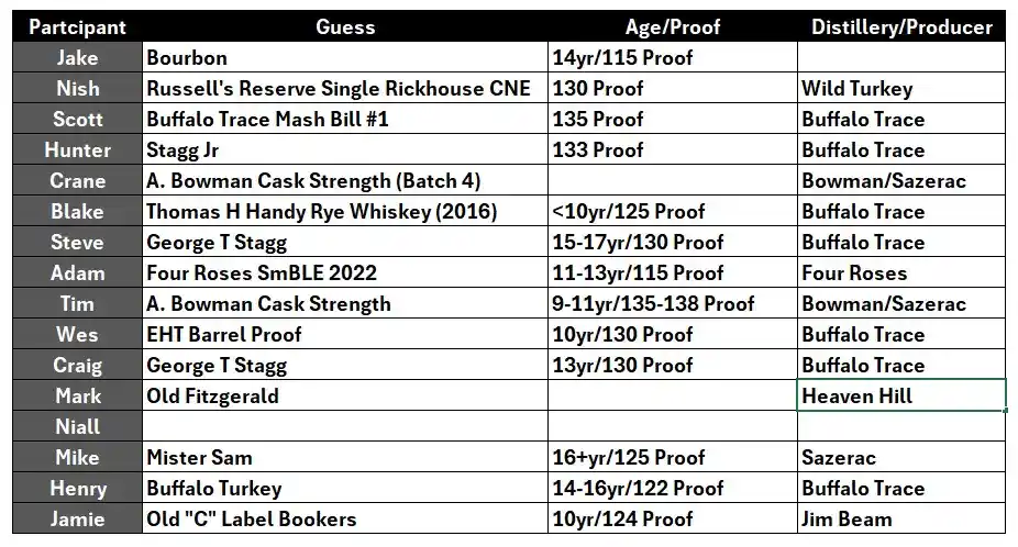 This is where I’d draw your attention back to the guesses graph at the beginning. You’ll notice that 11 out of 13 members that submitted a proof guess said it tasted hotter than 122 proof (12 if you fill in the blank on what Crane guessed for his bottle). And 7 of those 11 members guessed a proof of at least 130. That amount of heat isn’t usually something Buffalo Trace is known for. Well, maybe with the exception of some of their Stagg Jr bottles. For the most part, I find BT products to drink below their proof. This is likely a main reason why so many new enthusiasts migrate to the brand in the first place.